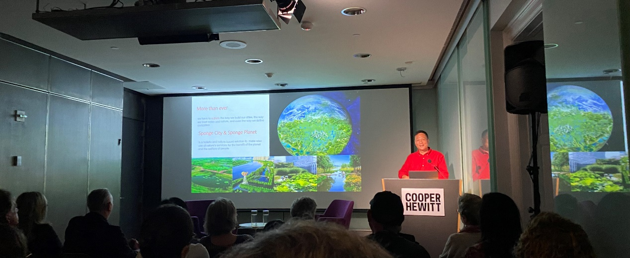 在10月7日库珀·休伊特设计博物馆还专门为俞孔坚举办了专场“创建海绵地球”报告和对话,向世界介绍其多年来应对雨洪、风暴潮等气候危机的设计经验与方法。