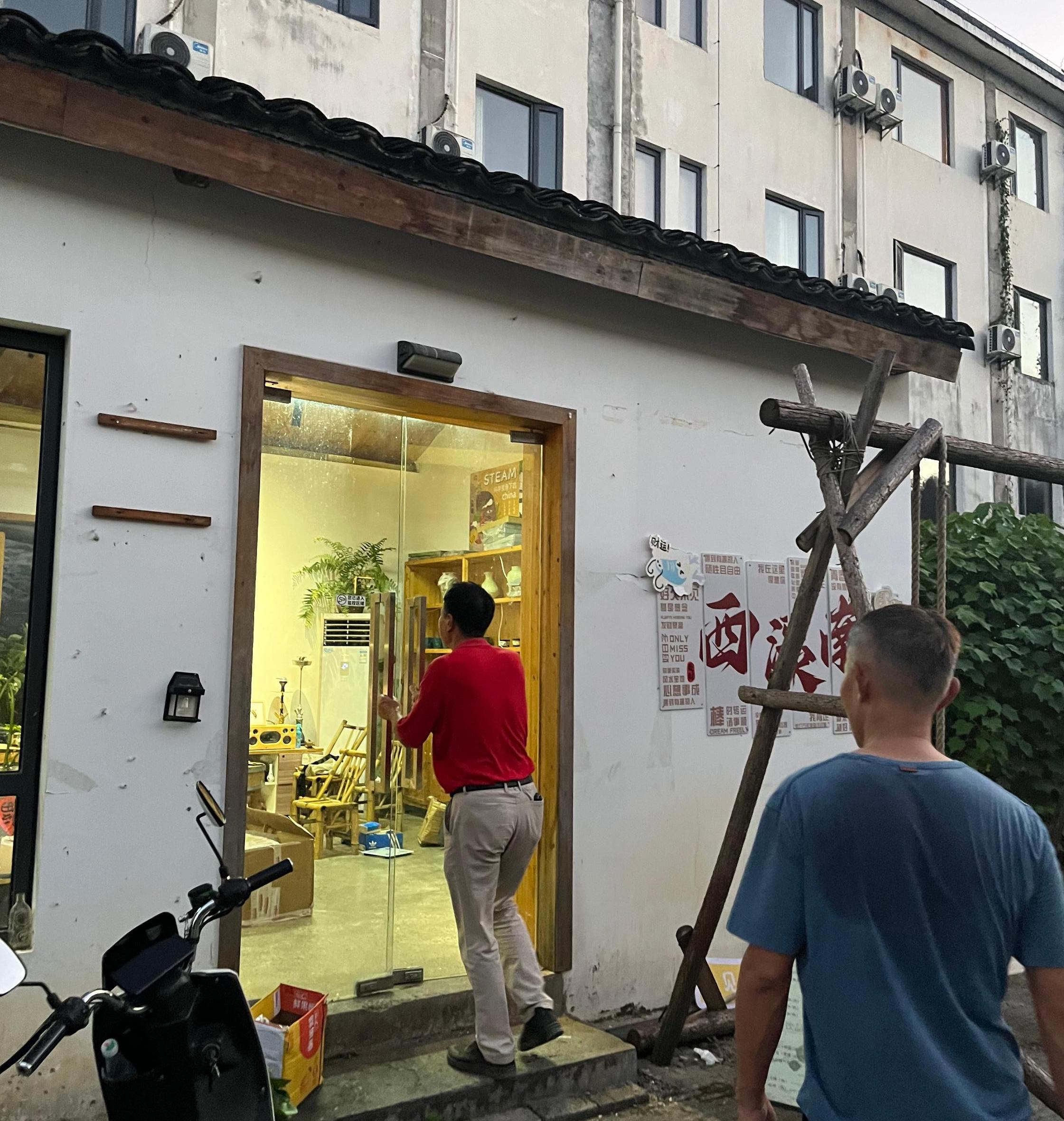 整个考察参观都很顺利和开心,我们到西溪南后,俞老师先是带我去了一个非常local的村民家里吃饭,那个家有养向日葵和鸡,走过杂草丛生的石砖,跨过门槛,来到正房屋,屋里有一个泥土堆砌的灶台,旁边有一个圆形木桌子,桌上有几盘菜,还有另外几个大老爷们也纷纷落座。过了一会儿一位阿姨端上来一道野生什么本地小鱼,刚钓上来的,很好吃,俞老师很爱吃,吃了好几条。因为我是新来的小辈,俞老师时不时会说,梦楠别客气啊,吃这个吃那个,让我一定夹一条小鱼尝尝。我很开心,心里倍感温暖,我如此一位初出茅庐的平庸之辈,能被俞老师这样对待和看见。可见,俞老师真的很珍惜每一位小辈,他愿意播撒种子,他期待有更多新的力量生根发芽同气连枝。