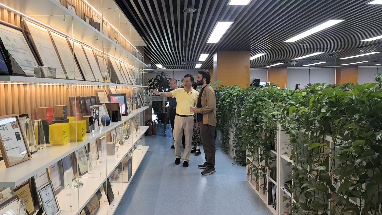 下午两点,我和Francesco 教授准时到达了办公室。俞老师的办公室非常质朴,有一个书桌摆着一台电脑,有一面墙上放满了书籍,另外还有一个八人左右的木质矮桌子,最令我惊讶的是桌子上还放着果蔬干和坚果小零食,我不禁心里一乐,大家都爱吃这个嘛。而且,俞老师的身型也比我想象中的高大健硕,体格匀称,这可能和他经常外出走路,真正的融入乡土人情中有关。