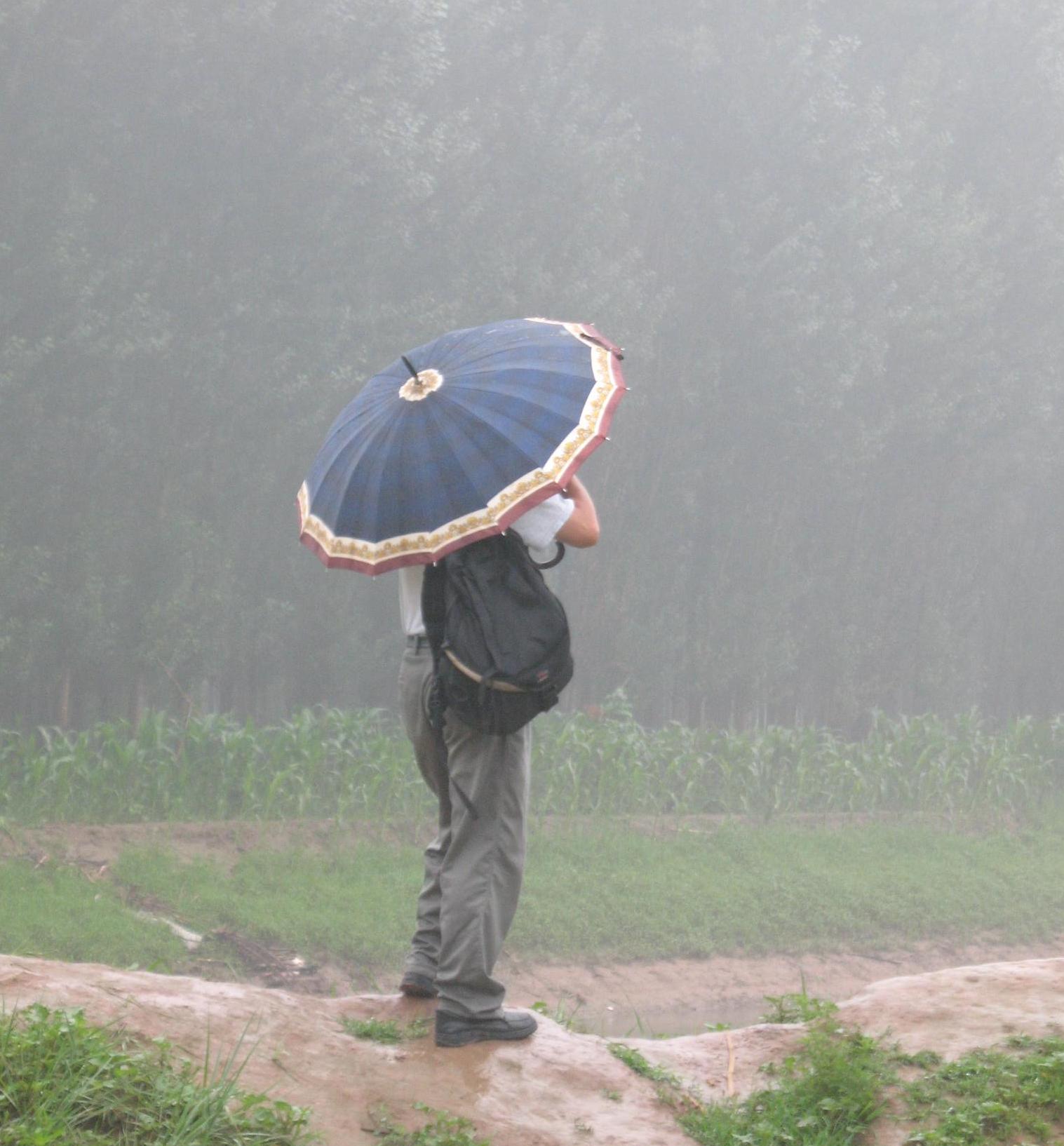 潇河岸边,大雨中,他自己扛着雨伞、背着背包、端着相机,他感叹自然的雕琢力,才让晋中有这么美丽的原生态河道。