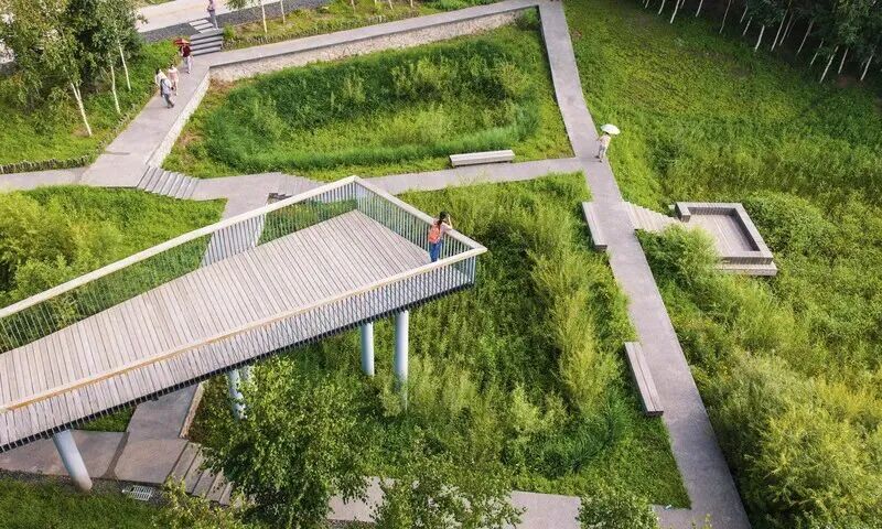 俞孔坚利用海绵理论所做的哈尔滨群力湿地公园