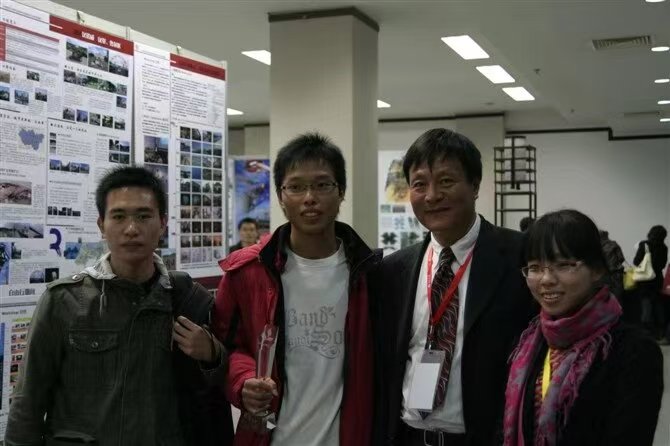 北京大学第七届景观设计学教育大会暨2009中国景观设计师大会期间,在第五届全国高校景观设计毕业作品展上,蔡鹏飞(左一)、闫茂辉(左二)、徐静(右一)与俞孔坚老师合影