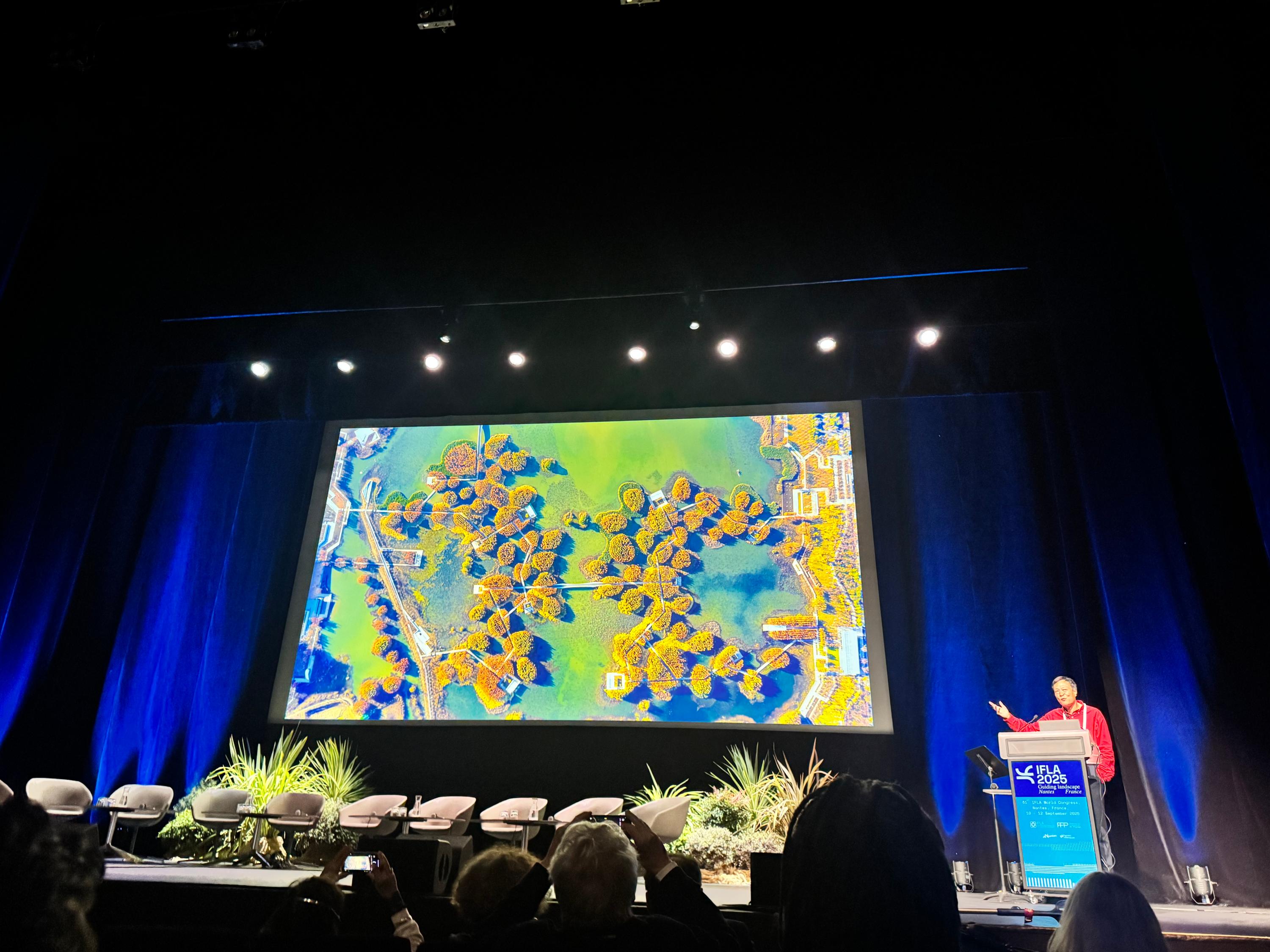 我有幸在2025年国际景观建筑师联合会(IFLA)南特大会上遇见俞孔坚教授——或许是闭幕式上坐在他身旁的最后一人。当我们为他的学生和获奖者欢呼时,他耐心倾听我讲述来自印度的故事:克什米尔的公民公园,它宛如一块巨大的海绵,吸纳着融化的雪水和不断上升的地下水;还有孟买红树林旁的城市森林,那里的人们与水为伴,水就是他们生活的全部。