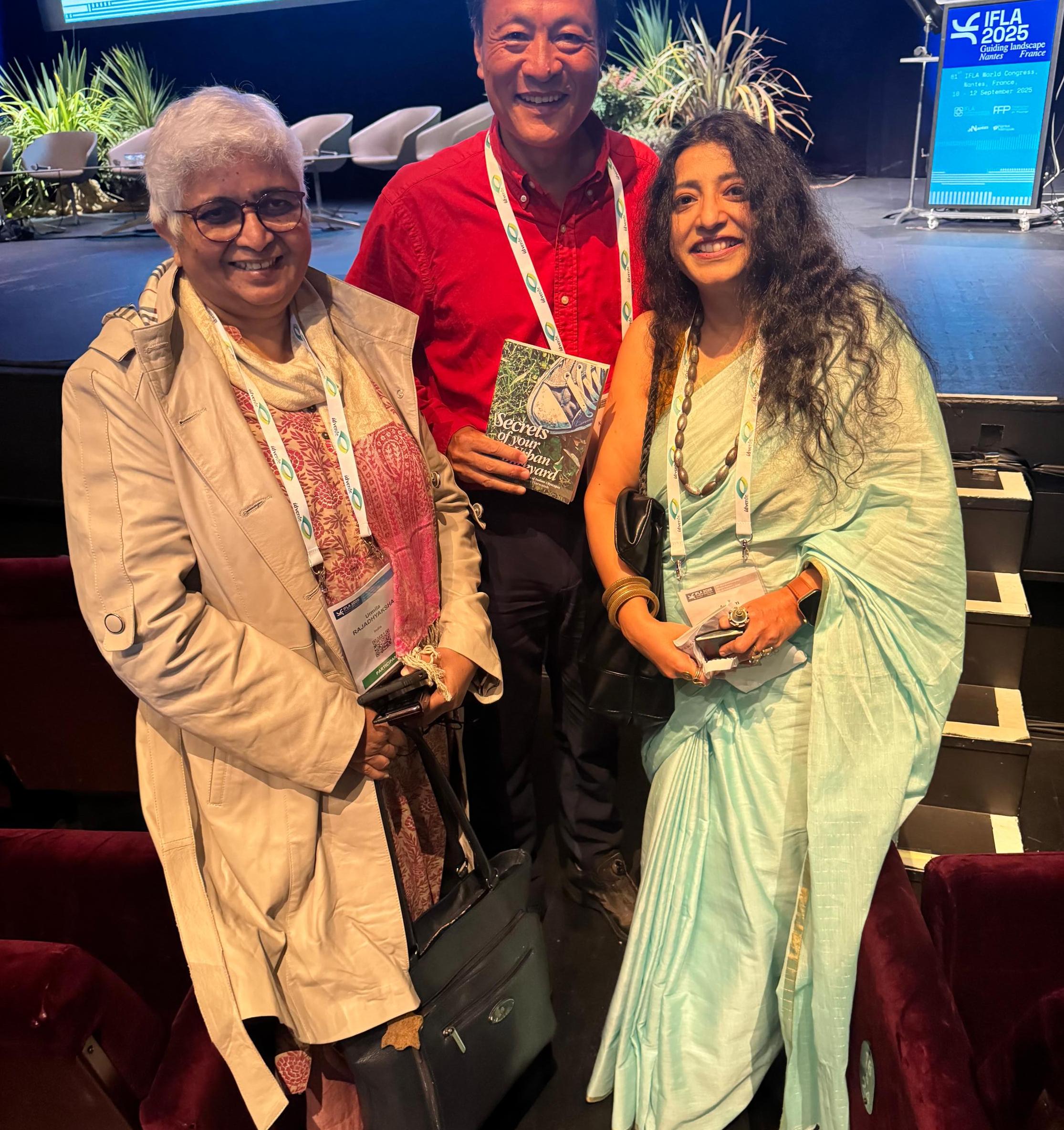我邀请他今年11月来孟买参加IFLA亚太会议时,顺道参观我们的项目场地,他微笑着表示会尽力成行。我还向他赠送了我的著作《𝗦𝗲𝗰𝗿𝗲𝘁𝘀 𝗼𝗳 𝗬𝗼𝘂𝗿 𝗨𝗿𝗯𝗮𝗻 𝗕𝗮𝗰𝗸𝘆𝗮𝗿𝗱》,他热情且好奇地收下了。
