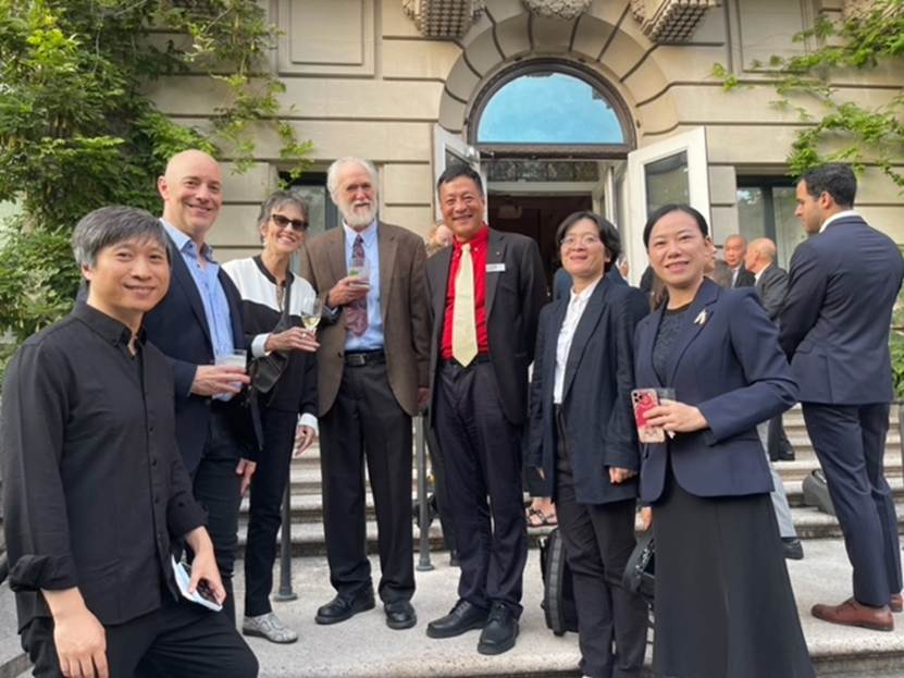 我找到了一张照片,是孔坚去年在波士顿港乘船游览一天后,在晚餐时拍的。