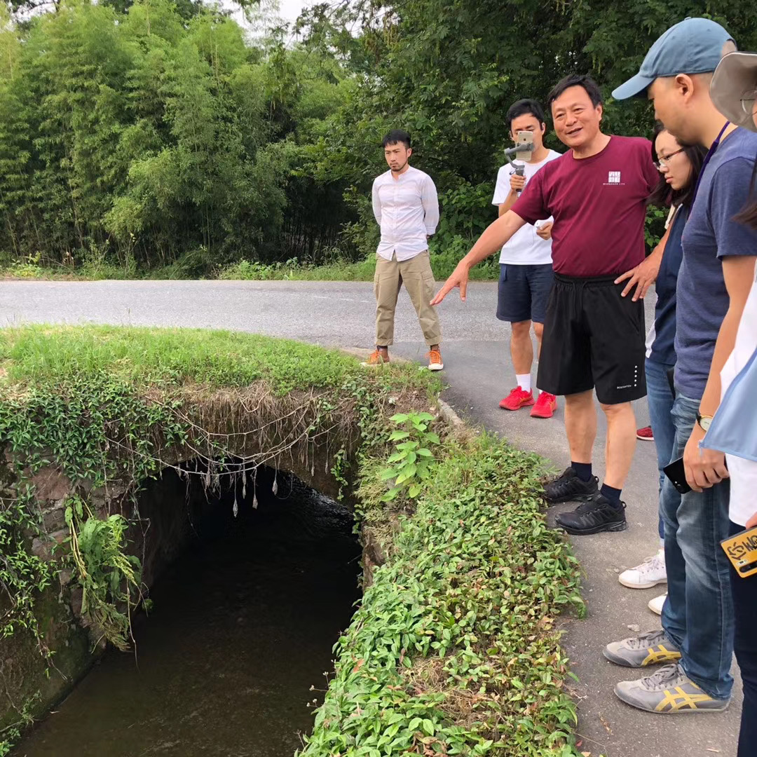 白天的时候,博士会带领我们去田间地头,一队人在田垄间一路奔袭,博士永远走在最前面,那些田间的作物、农民手支的藤架、水渠的形式、古老的水堰在博士的讲解中展现出了非同一般的样貌,他向我们娓娓道来,从安徽的历史、地理、人文到农民与土地相处的智慧、小生灵们的生活习性再到我们景观设计所需要肩负的史命,我才发现,他不仅是一个设计师,由于我工作的局限,我竟然忘记了他作为学者的身份,是的,他是北大的教授,景观学院的院长,这不止是一个名号,他与我们交谈中,无意间展现出的知识的广博、实践的落地性、人文关怀、对乡土和大地的诚挚热爱,都一再提醒我,博士现在所处的高度,或许早已无人能够企及。
