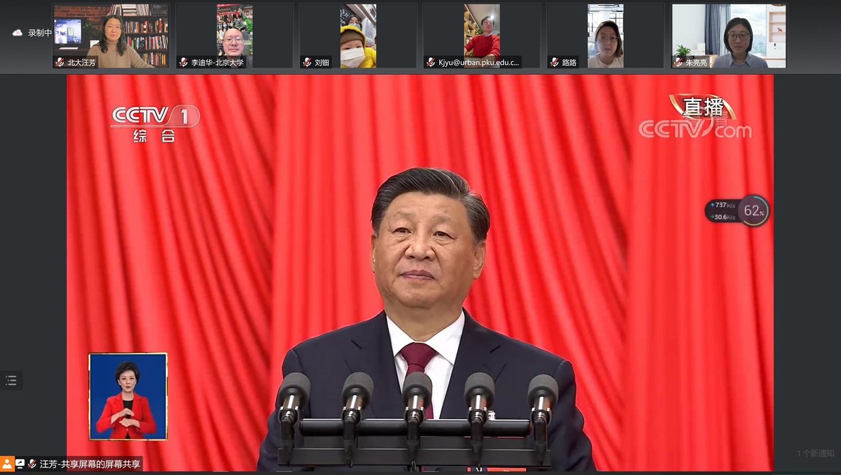 与此同时,中国共产党北京大学城市与环境学院景观学院学生支部和建筑与景观设计学院研究生会共同组织观看中国共产党第二十次全国代表大会,活动在建筑与景观设计学院一层报告厅举行。副院长李迪华、王志芳,专任教师张天新在现场与同学们一同观看、学习和交流。活动由学生支部书记宋天宁主持。