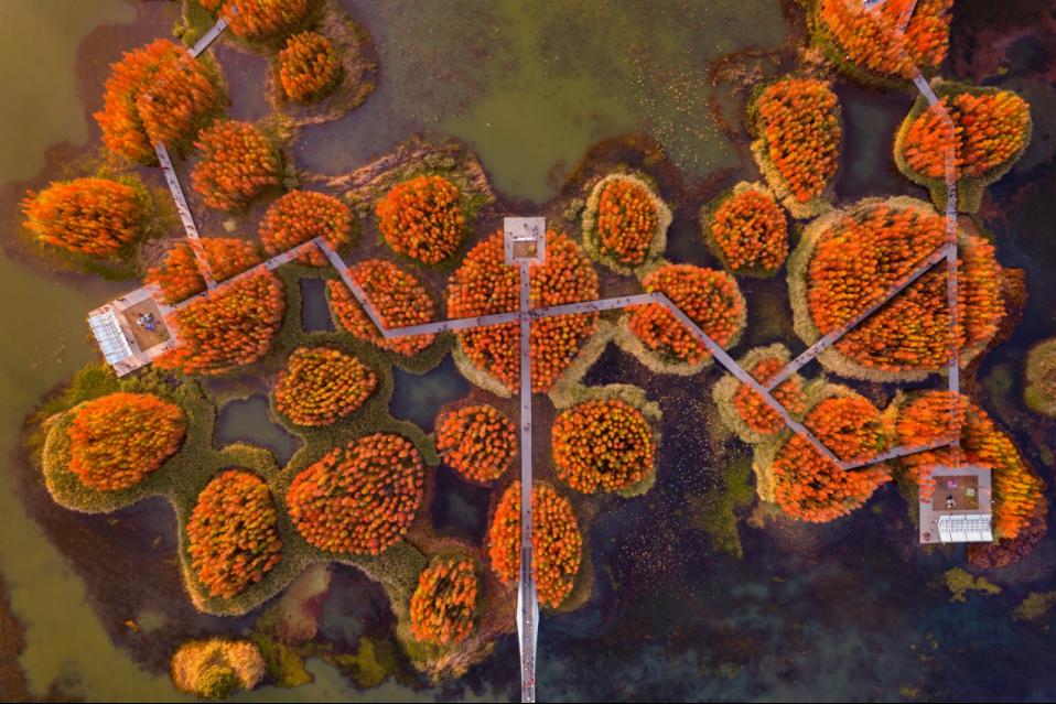 所选树种均适应水位波动环境,包括落羽杉、池杉与水杉等兼具强适应性及绚丽秋色特征的品种