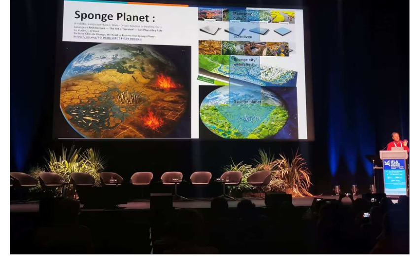 国际专业媒体在会前和会后均对大会及主旨演讲进行了报道,指出俞孔坚教授倡导的“海绵城市”与“海绵地球”理念正在成为全球自然基础设施与气候适应的重要路径。其在南昌鱼尾洲、三亚东岸湿地、曼谷班加奇森林公园等项目中积累的实践经验,已成为国际城市与区域转型的重要参考。